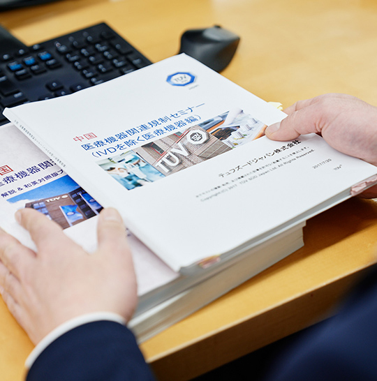 中国、韓国、ベトナム、インドネシアなどアジア諸国への「医療機器ライセンス申請」業務と「輸入販売のための業許可更新」業務を行っています。「医療機器ライセンス申請」業務とは外国で製品を販売するために、各国へライセンスの新規申請をしたり、一定期間ごとにライセンスを更新したりする仕事です。一方の「輸入販売のための業許可更新」業務は各国の医療機器に対する法規制に従い、必要な資料を準備して販売代理店へ提出します。国によっては、海外当局の審査官が来日し監査が行われることもありますので、その対応もします。