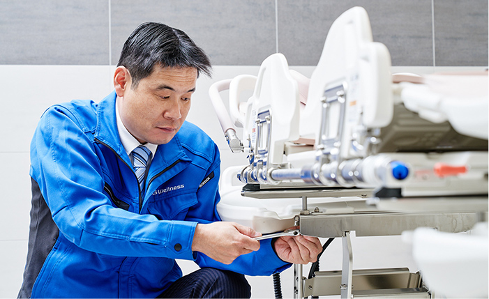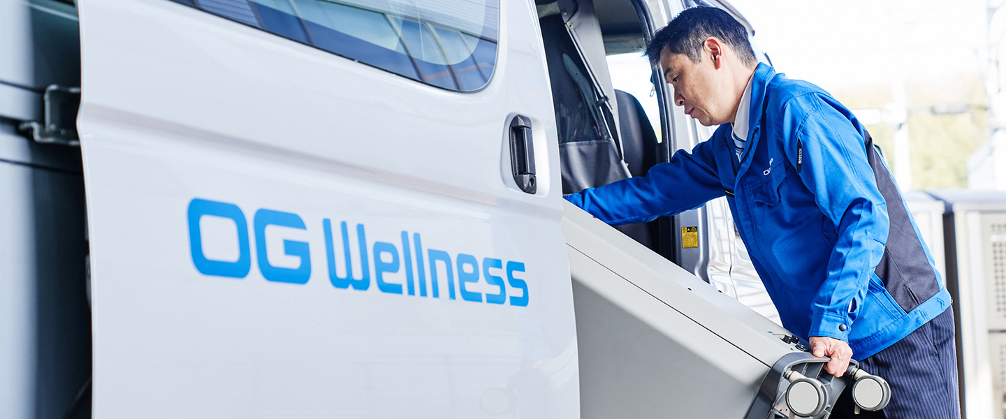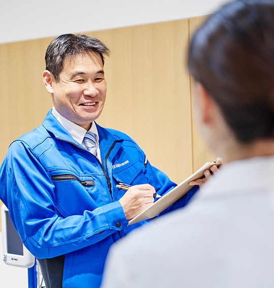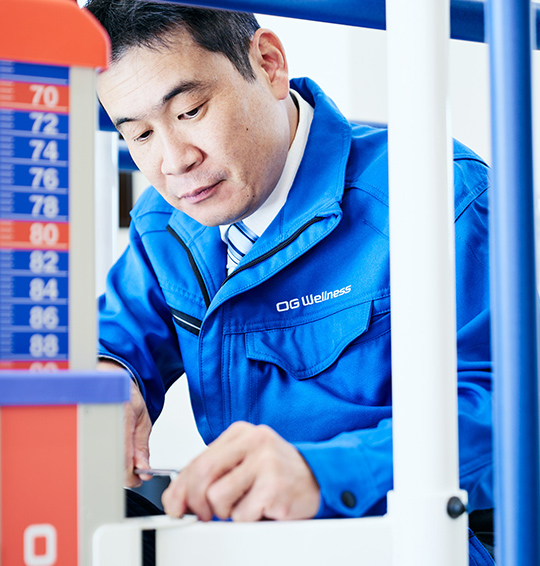 OG Wellness製品を購入いただいた医療機関や介護施設を訪問して、アフターサービスを行うのが主な仕事です。専用の測定器を使って製品の安全性を診断する保守点検のほか、修理や交換などが必要であればメンテナンスも担当します。